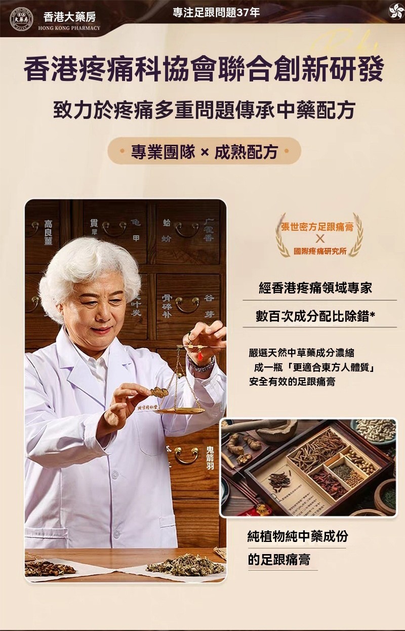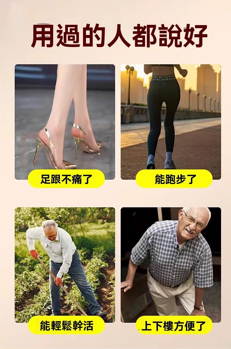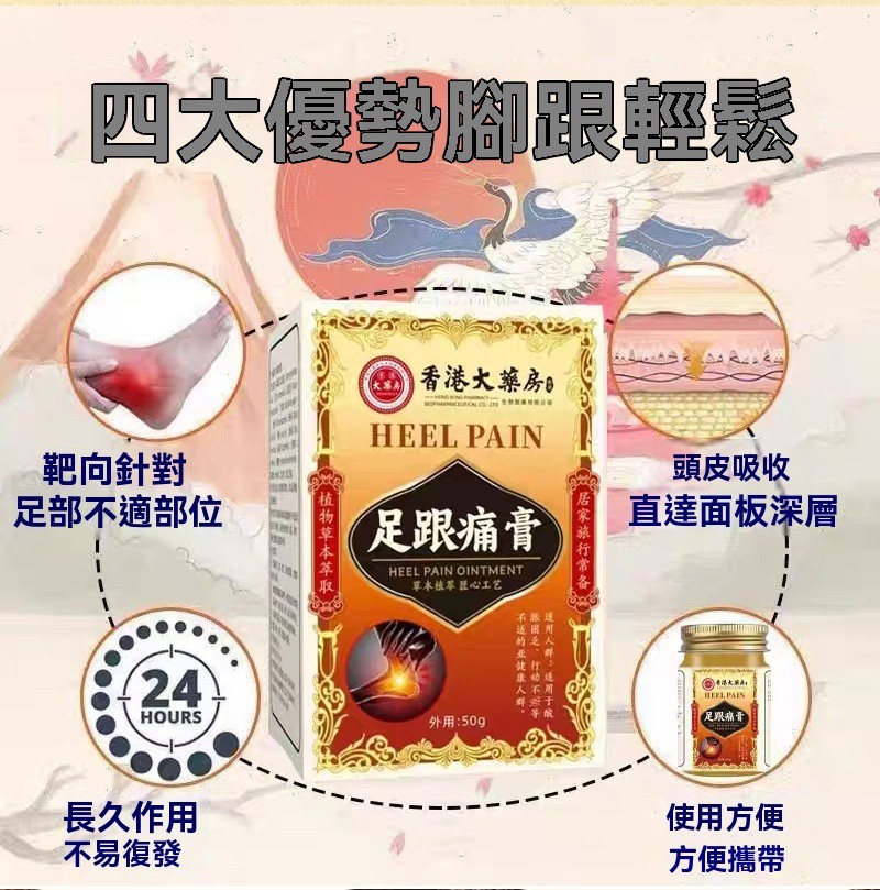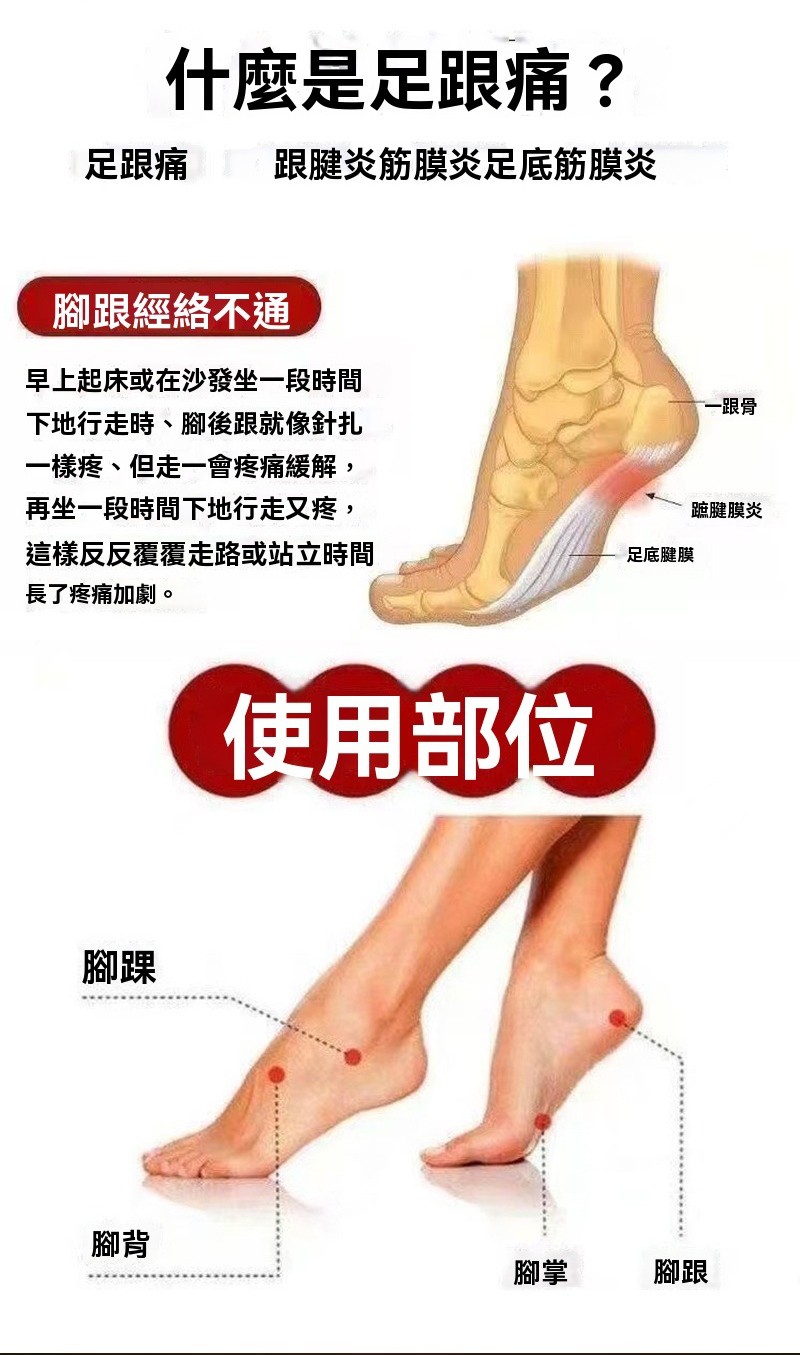【足跟消痛膏】專攻足跟痛的草本配方 ✔ 針對足跟骨刺、足底筋膜炎、跟腱炎研製,走久站久的腳底痛通通有效 ✔ 人工精選中草藥成分,溫和無刺激 ✔ 高滲透質地,塗抹後直達痛通有效 ✔ 人工精選中草藥成分,溫和無刺激 ✔ 高滲透質地,特別適合長時間站立、行走點,尤其適合長時間站立、行走的人群
