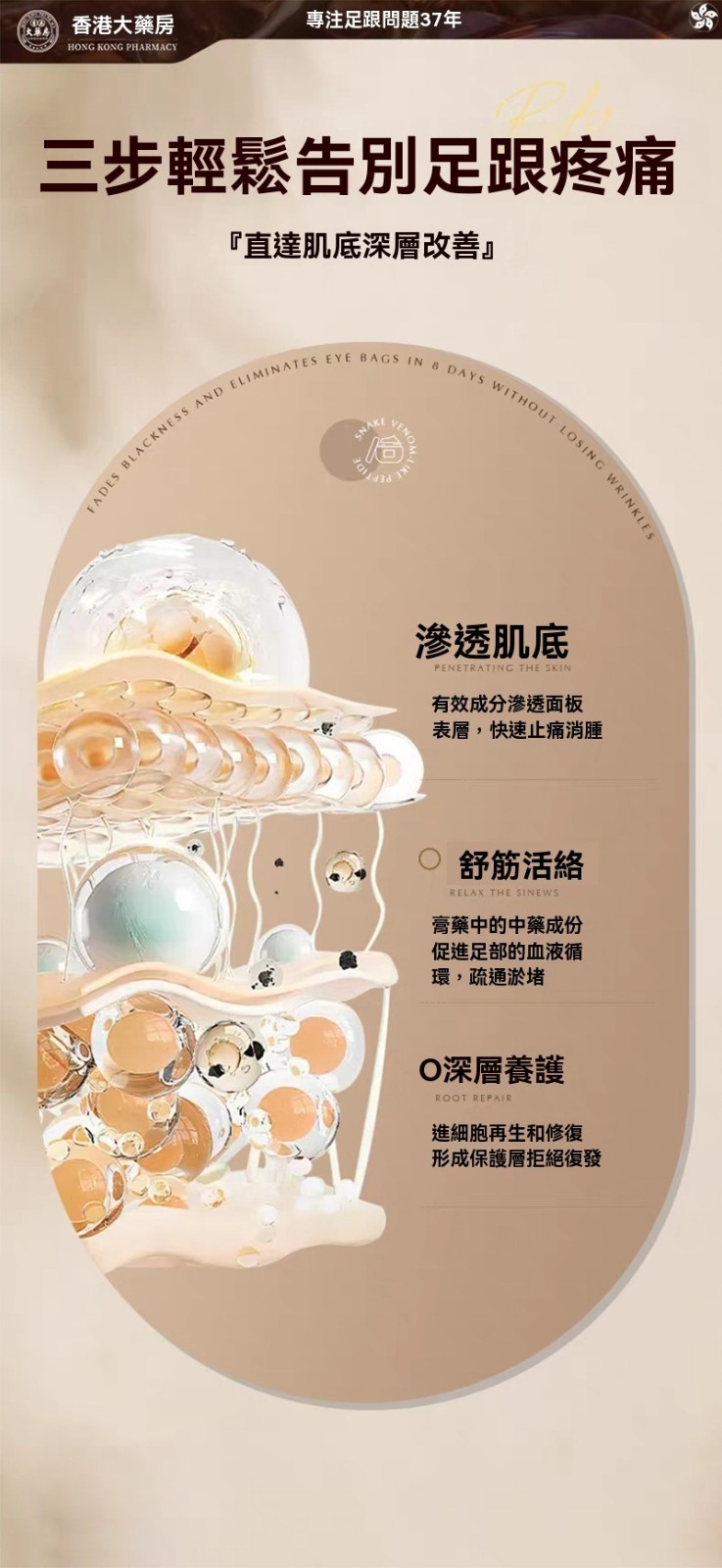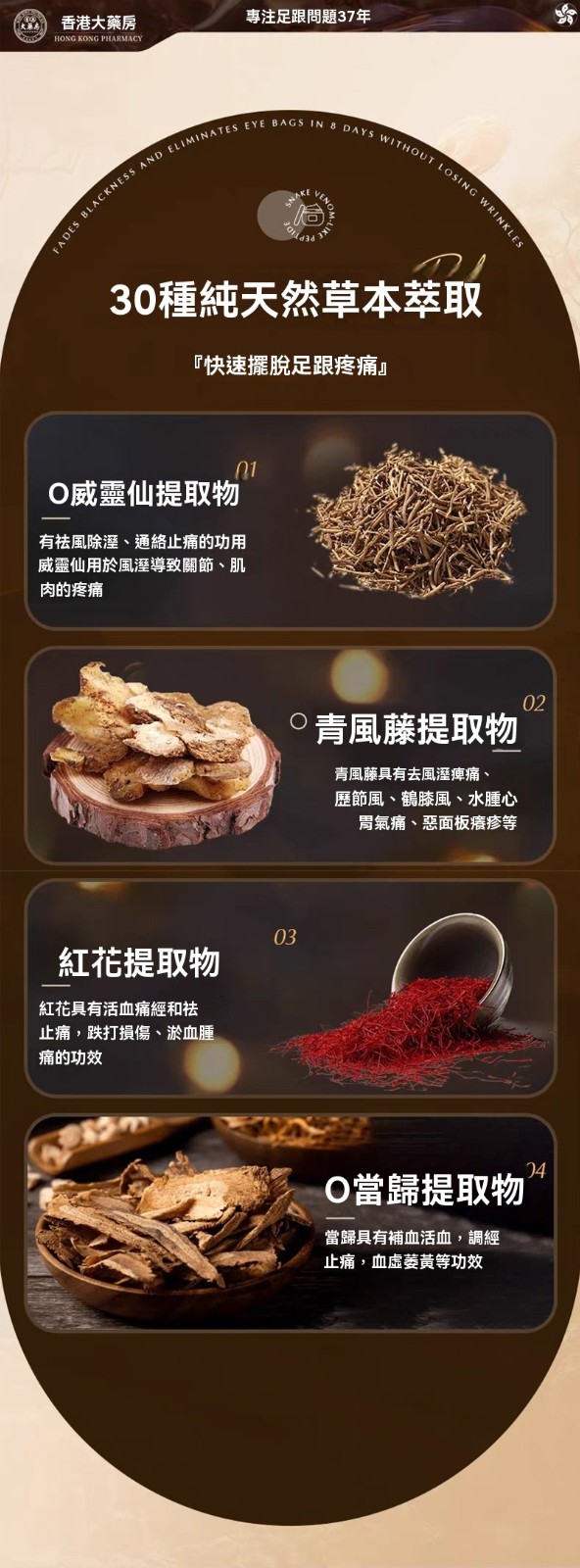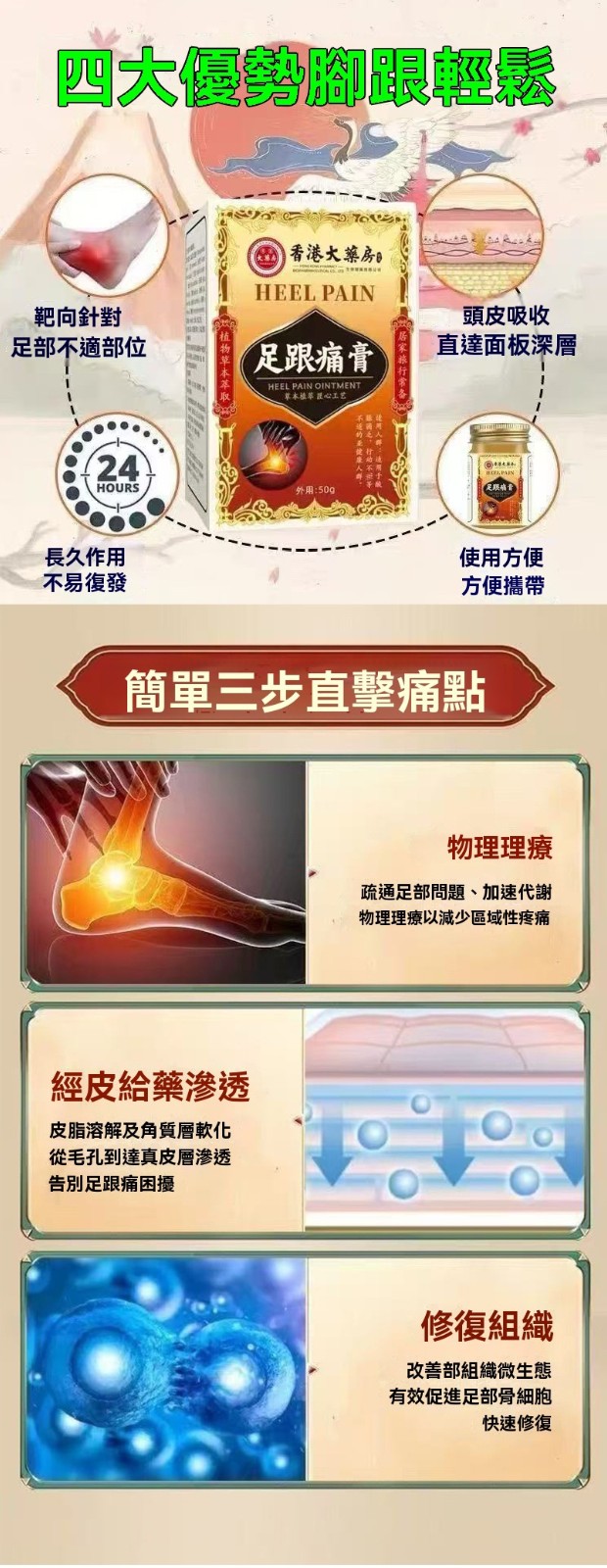 【足跟消痛膏】專攻足跟痛的草本配方 ✔ 針對足跟骨刺、足底筋膜炎、跟腱炎研製,走久站久的腳底痛通通有效 ✔ 人工精選中草藥成分,溫和無刺激 ✔ 高滲透質地,塗抹後直達痛通有效 ✔ 人工精選中草藥成分,溫和無刺激 ✔ 高滲透質地,特別適合長時間站立、行走點,尤其適合長時間站立、行走的人群